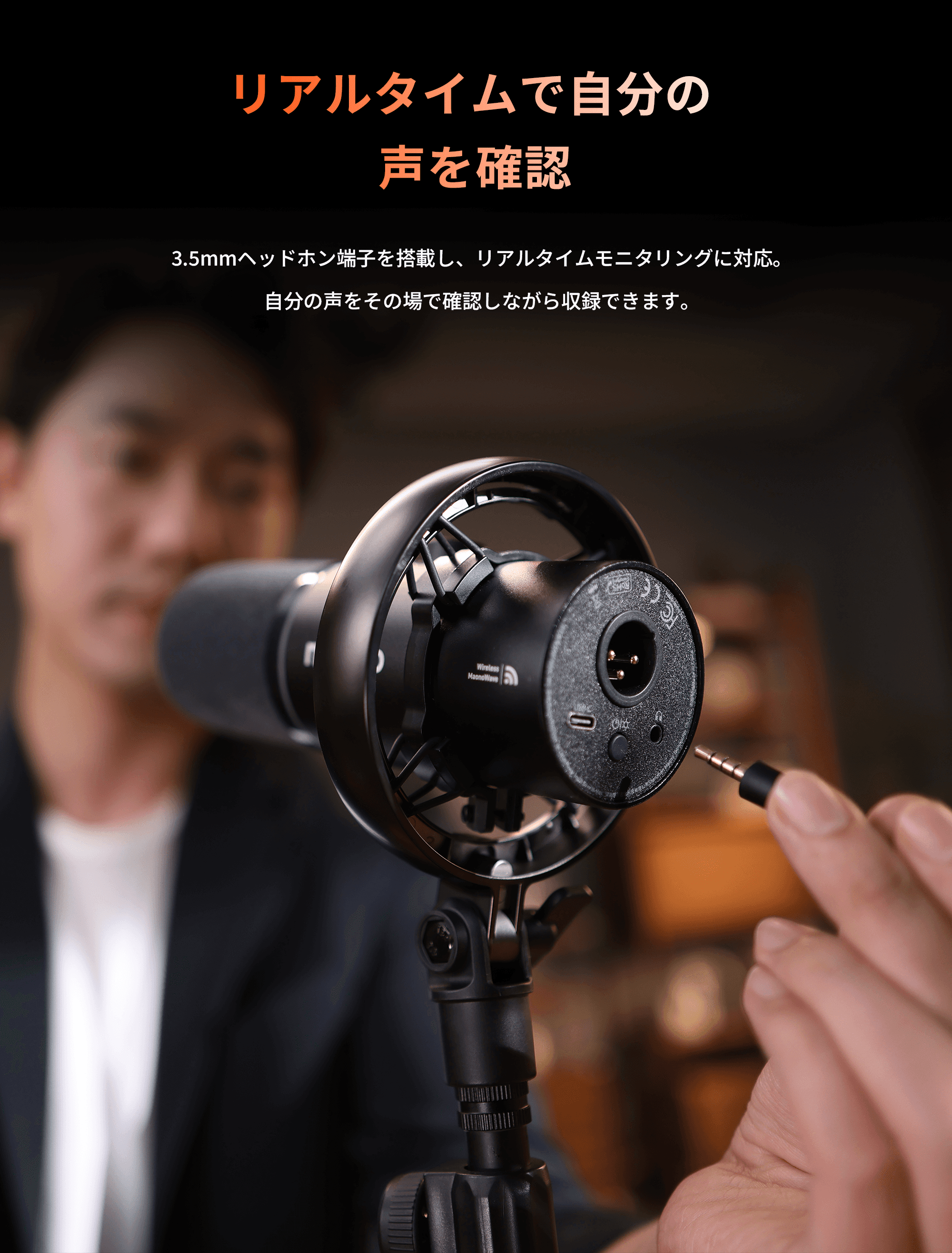 ミキサーやオーディオインターフェースと接続することで、本格的な収録環境を実現。 長時間の録音でも、音質が揺らがない安心感。