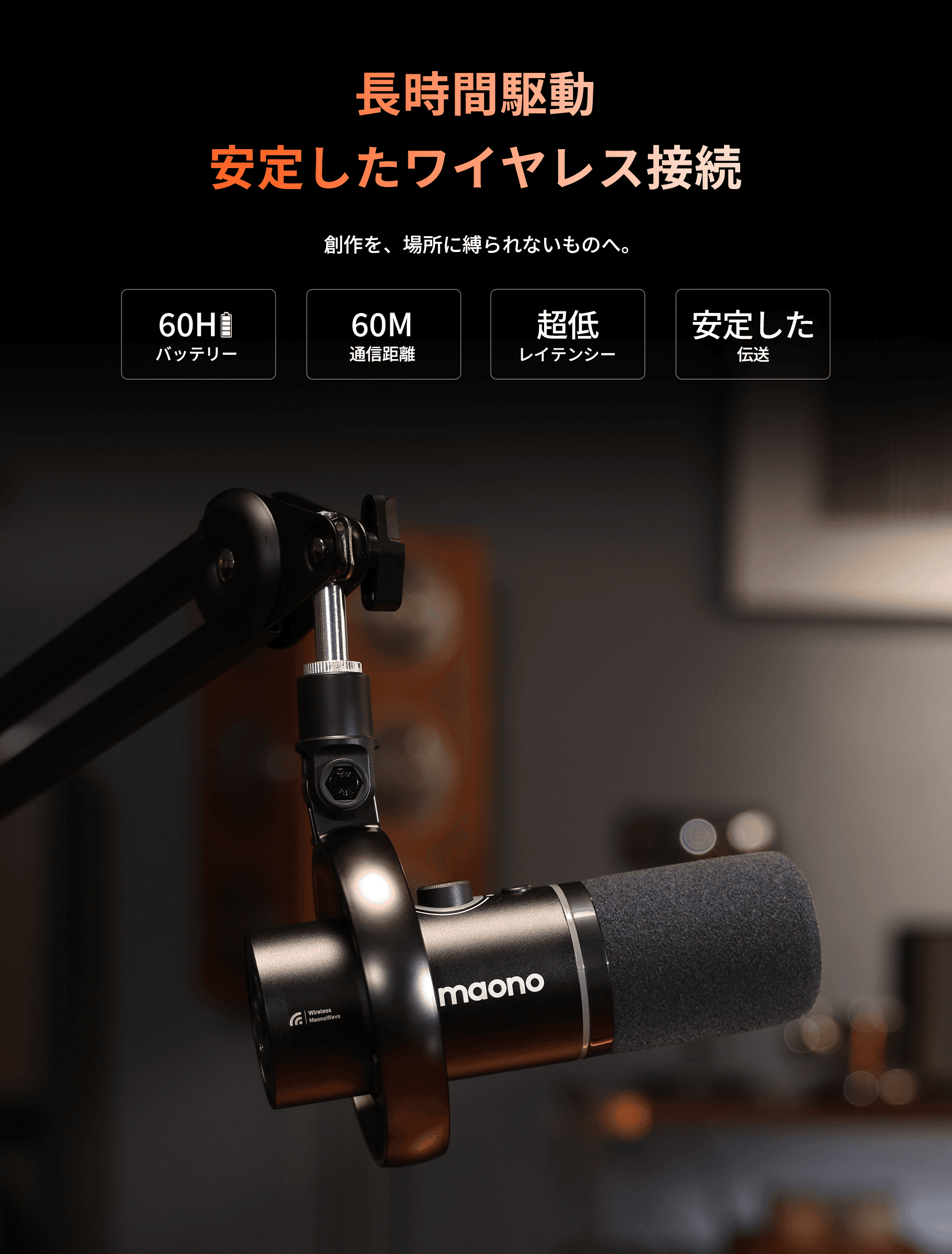ワイヤード・ワイヤレス両対応で、在宅ワークに最適なポッドキャスターやクリエイターへの完璧なギフトです。