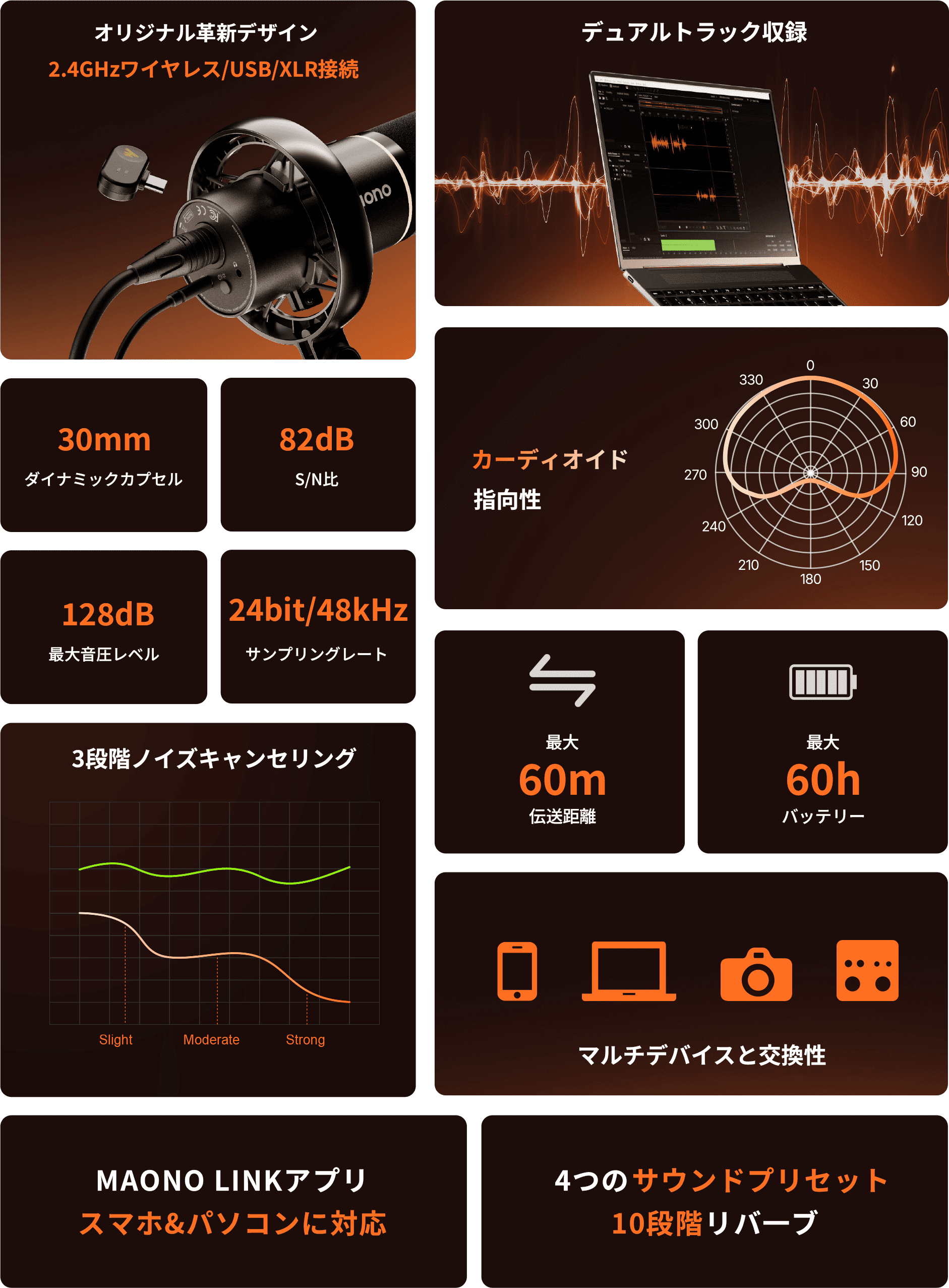 Windows / macOS対応(ドライバーのインストールや複雑な設定は不要)。はじめてのマイクでも、電源を入れてすぐ使える。 オンライン授業、リモート会議、ライブ配信にも最適。